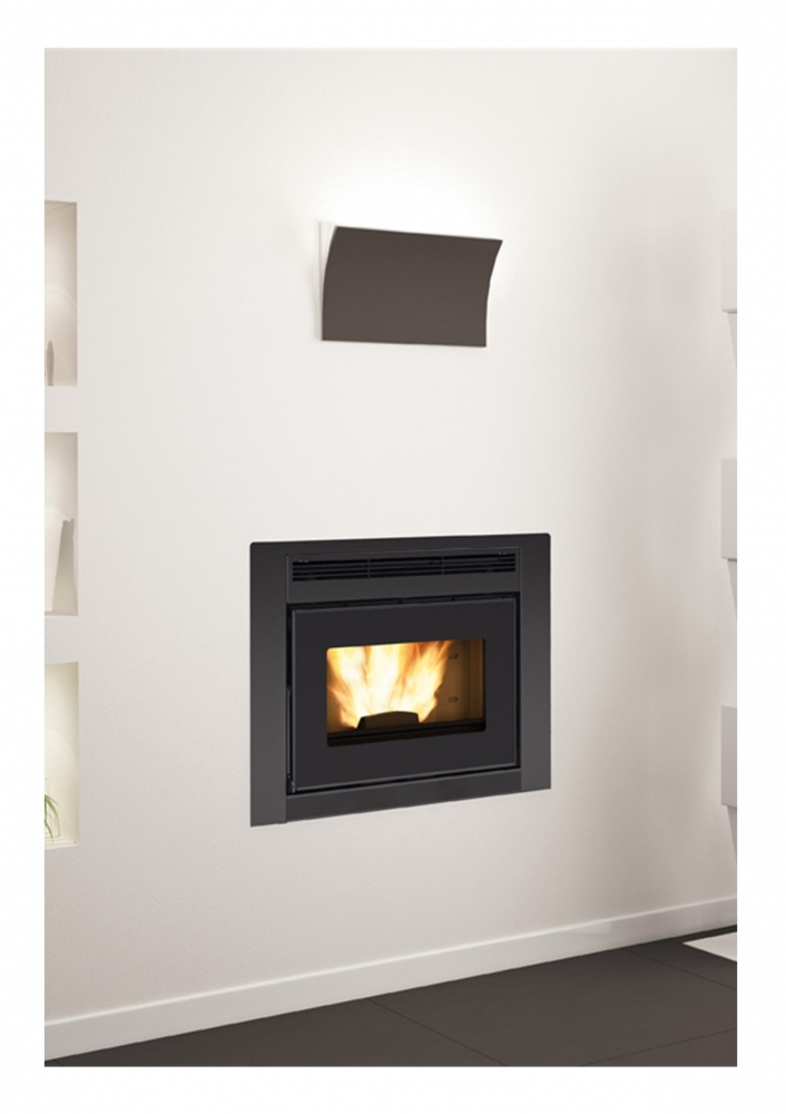 Geventileerde pellet-hydro-inbouwkachel • Verbrandingskamer in zeer dik staal • Vuurdeur en vuurpot in gietijzer • Warmtewisselaar met buizenbundel met automatische reiniging • Verwijderbaar ascompartiment • Frontale omgevingsventilatie met aparte motor en comfortfunctie, uitschakelbaar • Keramische ontsteking voor snelle inschakeling • Circulator met PWM-controle • Niveausensor pellets • Noodmodule • Thermische beveiligingen en waterdrukbeveiliging • Veiligheidsklep 3 bar • Expansievat • Ontluchting • Ruim zicht op de vlam • Mogelijkheid uitgang voor rookafvoer: boven • Hydraulische koppelingen bovenste deel • Handgrepen voor optillen om de verplaatsing te vergemakkelijken • Draadloze bediening • OPTIES : wifi module (wit etiket) - frontale lade (L200 of L300) - kit boven/zijvulling - kit installatie uitbreidingskaart - kit steunKachel kenmerken