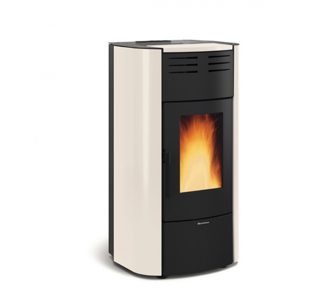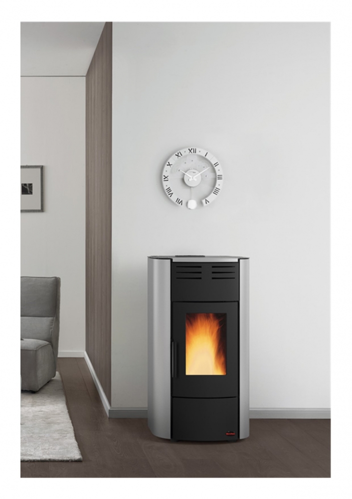 Geventileerde CV-pelletkachel • Verbrandingskamer in zeer dik staal • Vuurdeur en vuurpot in gietijzer • Warmtewisselaar met buizenbundel (handmatige reiniging) • Hermetisch reservoir • Verwijderbare aslade • Frontale omgevingsventilatie met aparte motor, uitschakelbaar • Keramische ontsteking voor snelle inschakeling • Circulator met PWM-controle • Thermische beveiligingen en waterdrukbeveiliging • Veiligheidsklep 3 bar • Expansievat • Ontluchting • Druktransducer met weergave op display • Mogelijkheid uitgang voor rookafvoer: achter • Innovatief adaptief systeem voor de regeling en de constante handhaving in de tijd van de verbrandingslucht • Black LCD • Afstandsbediening IR Touch met Achtergrondverlichting • OPTIES : wifi module (grijze etiket) - kit installatie uitbreidingskaartKachel kenmerken